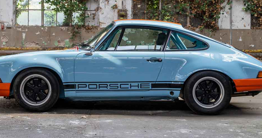 Die angebotene 911 2.3 S/T Recreation aus der C-Serie (Modelljahr 1970, Basis 911 2.2 T Coupé) beeindruckt durch ihre Präsenz. Die makellose Restauration, die mit Liebe zum Detail und absoluter Präzision die perfekte Fahrbarkeit des fertigen Fahrzeuges zum Ziel hatte, wird den damaligen Werks-Umbausätzen auf 2.3 S/T in jedem Punkt gerecht. Die perfekte Einstellung der Bosch-MFI-Einspritzpumpe und das clevere Bedienkonzept mit Standgashebel machen den Rennwagen locker alltagstauglich. Dafür sorgt auch die Auspuffanlage, die auf der einen Seite den unvergleichlichen Ton des an das 911/20-Aggregat angelehnten Triebwerks herausarbeitet, auf der anderen Seite aber voll straßentauglich ist. Damit ist die 911 2.3 S/T Recreation dank ihres FIA HTP Wagenpasses nicht nur für sämtliche klassischen Rennveranstaltung tauglich, sondern auch für die schnelle Ausfahrt am Sonntagmorgen.